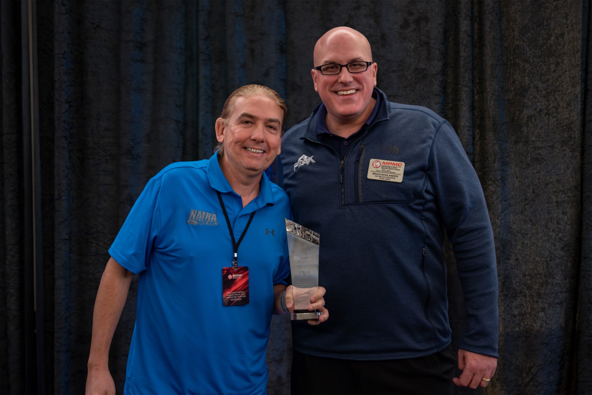 Steve Turner of Promedia Events and Publishing, and NMRA, was honored with the MPMC Robert E. Petersen Media Award during the Media Trade Conference Happy Hour. The award acknowledges individuals who have made significant contributions to the motorsports parts manufacturing segment of the aftermarket, or to the MPMC itself.