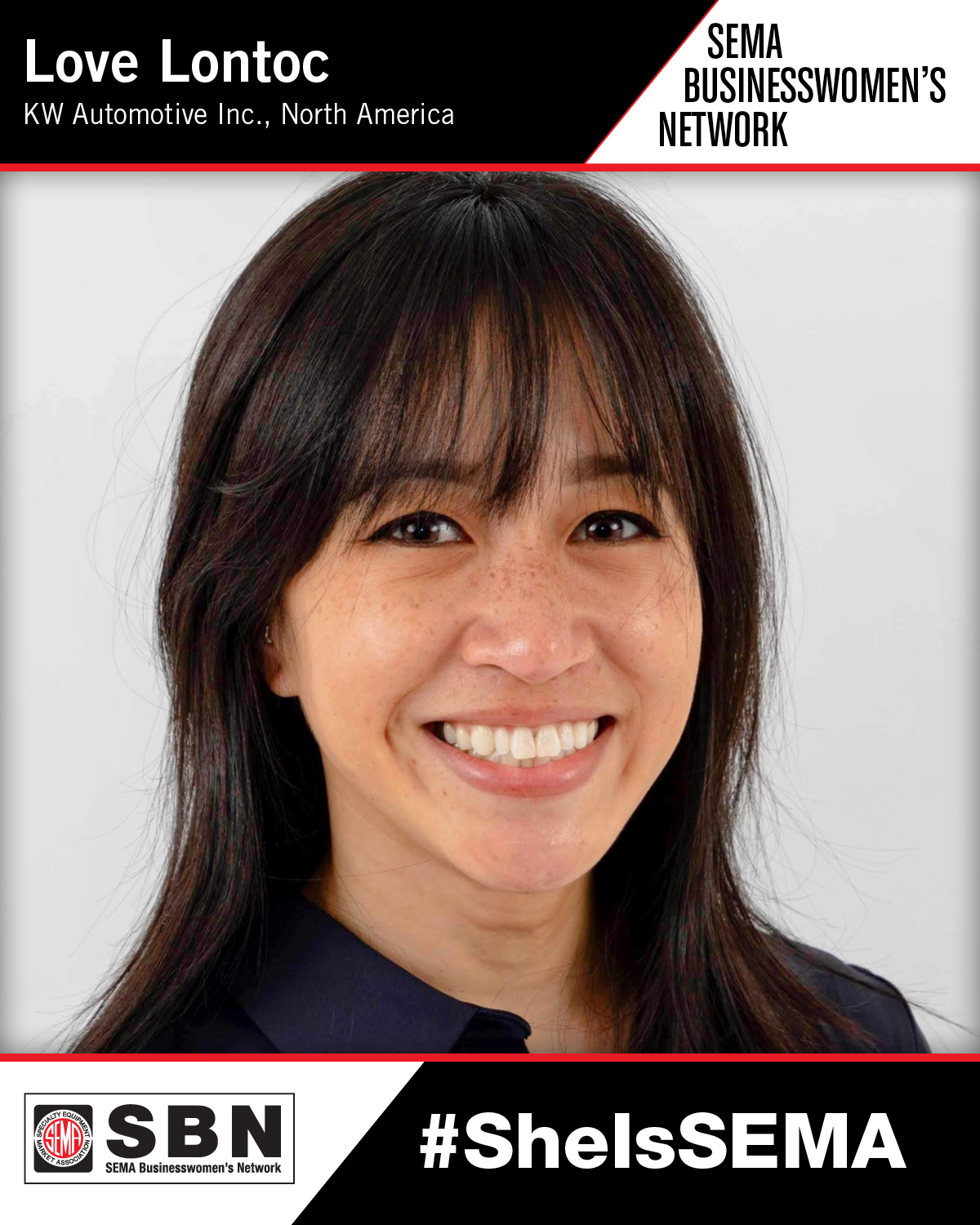 Love Lontoc, brand manager associate at KW automotive North America Inc., is the SBN's newest #SheIsSEMA spotlight member.