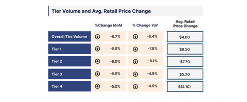Pricing: While other tire tiers saw price hikes YoY, Tier 4 prices have dropped by $4.10 in July 2023 versus the same time last year.