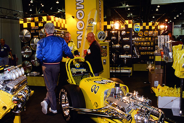 Fuel tanks, spun aluminum disc wheel covers, fuel blocks and more were familiar Moon products. But the most popular item sold by the entrepreneur of hot rodding, Dean Moon, was the ubiquitous Moon Eyes decal, seen in virtually every country in the world. A former machinist, Dean’s early years involved helping hot rodders by building their roadsters behind his shop. As a result of the networking he did as secretary of the Russetta Timing Association, his knowledge of speed-producing tips and tricks grew and resulted in him becoming one of the most sought-after hot rodders on the dry lakes. Dean was the second president of SEMA in 1964, following his notable involvement in the formation of the Association. His legacy lives on in the form of Mooneyes USA.