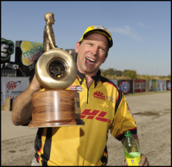"I think we may have stolen this one today. It was definitely a challenge because we didn’t have the fastest car all day, so in between rounds the whole DHL Toyota team had to go back to work. The final was crazy. We got a good start and we were cruising along and all of a sudden the car just made a hard right hand turn. I let off and we hit the finish line, and I didn’t know if we won or not until I heard it on the radio. Now we’ve got a week off and we aren’t looking at the championship; we’re just going to prepare for Las Vegas and that’s the only thing that matters."