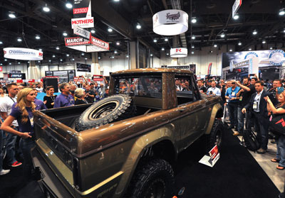 Featured in the Royal Purple booth is a ’66 Ford Bronco built by Andy Leach of Cal Automotive Creations. It was revealed at a Tuesday press conference and was also a top 21 finalist in the SEMA Show Battle of the Builders competition.