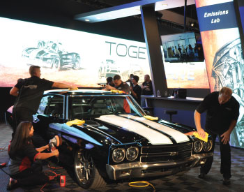 ![]() Best in Show was awarded for a ’59 Chevrolet Biscayne, built by Troy Trepanier and featured in the Mothers Polish’s booth. From left, Todd Parker, Chevy Director of Design for Accessories and Special Builds; Tom Gardner, Chevy SEMA Vehicle program manager; Mothers Polishes’ Barbara Holloway, Jim Holloway, Dennis Holloway, and Troy Trepanier of Rad Rods by Troy. | ![]() This ’70 Chevelle, winner in the G Machine category, was featured in SEMA Central in the Grand Lobby. |