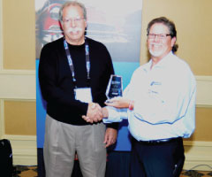 ![]() Jim Smith, Ultra Wheel Company (right), was inducted into the WTC Hall of Fame. His wife Gina (left) joined him at the award presentation. |