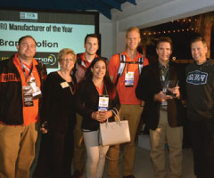 ![]() Big Country/Go Rhino was awarded with MRN’s Sales Team Annual Recognition (STAR) award. From left, Chair Les Rudd, B.J. Leanse, Chair-elect Vic Bennett and Director of Networks Bryan Harrison. | ![]() Jeff Bates, (third from left) Bob Cook Sales, received the MRN Hall of Fame award. |