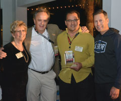 ![]() Longtime TORA volunteer Joel Ayres (left) and Chair Lee McGuire (right) with Daniel Morrison (second from left) and Charles Morrison IV (second from right), who accepted the TORA Hall of Fame award for their grandfather, Charles Morrison Jr. | ![]() Ron DiVincenzo (left) accepted the Retailer of the Year award for Cap World Inc. |