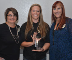 ![]() Rose Kawasaki (left) of Exports International LLC was SBN’s Athena Woman of the Year. | ![]() From left, Chair Erin Gilhuly, 2015 Athena Rising Star Kirstin Stone of Reaction Time Marketing and Chair-elect Camee Edelbrock. |