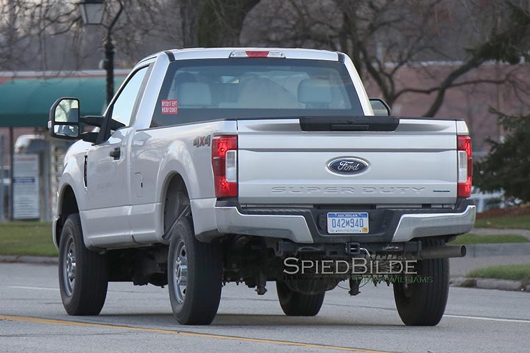 This is the ’17 Ford F-350, caught in base XL trim with the 8-ft. bed. Ford has revealed most of its ’17 F-series lineup, but this bad boy was left in the cold.