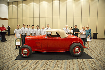 ![]() The ’32 Ford Hi-Boy Roadster that will be offered for sale at the 2016 Barrett-Jackson Auto Auction was built by volunteers in collaboration with L.A. Roadsters, along with students at the Alex Xydias Center for Automotive Arts (AXC). |