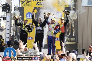 SCHUMACHER, FORCE END VICTORY DROUGHTS ON LIVE NATIONAL STAGE; A.J., HINES CONTINUE MOUNTAIN DOMINANCE: The two winningest drivers in their respective classes in NHRA history—John Force and Tony Schumacher—scored historic victories last Sunday at the Mopar Mile-High NHRA Nationals at Bandimere Speedway in Denver. Allen Johnson (Pro Stock) and Andrew Hines (Pro Stock Motorcycle) also were winners at the first NHRA Mello Yello Drag Racing Series finals in history to be televised live on a national broadcast network.