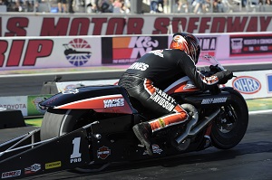 5: Number of wins at The Strip at Las Vegas Motor Speedway Pro Stock Motorcycle racer Andrew Hines has in his career. He is the defending race champion and has won the race the past two seasons. Last year at the event he used his fourth win of the season to propel him to his fifth world championship. Hines is currently second in points and trails his teammate Eddie Kraweic by 17. Krawiec, who is a three-time Pro Stock Motorcycle world champion, has two wins at the track.