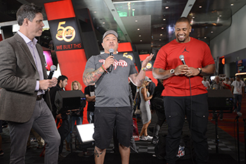 ![]() Master car builder James Torrez (center) and Super Bowl champion LaMarr Woodley (right) talk about “Tackle My Ride” last week during the SEMA Show in Las Vegas. |