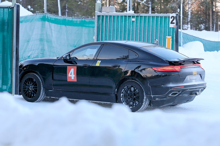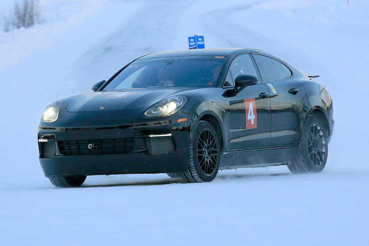 The Mission E, seen testing at VW’s secret test facility in northern Finland, is Porsche's first real step toward an all-electric vehicle in its lineup. First introduced as a concept at the 2015 Frankfort Motor Show, the Mission E pictured here with the skin of a Panamera body is jacked up to make room for batteries and a tailpipe that hide its true EV intentions.