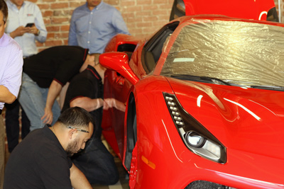 The SEMA Garage recently partnered with the Midway Group to host a joint measuring session featuring the ’17 Ferrari 488 and the ’17 Mercedes AMG GT. SEMA members headed to Midway’s MG Studio in Los Angeles with tools and cameras in hand ready to gather specs, research model additions and develop plans for new products.