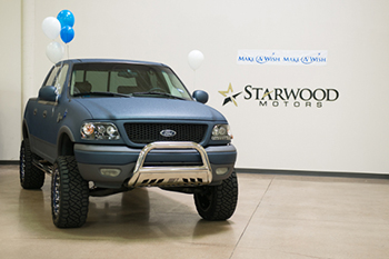 ARIES Automotive has announced its partnership with the Make-A-Wish Foundation in another build project—a collaboration with Starwood Motors and several other automotive aftermarket companies to turn one man’s Ford F-150 into a dream truck. The build started when Jordan Shrum wished for a new paint job on his ’01 Ford F-150 SuperCrew 4x4. The wish was granted by the North Texas Make-A-Wish Foundation, which reached out to several large aftermarket manufacturers to deliver far beyond a new paint job. With contributions and collaborative efforts from ARIES Automotive, Center Line Alloy Wheels, Fabtech Suspensions, Nitto Tire USA and others, the truck was given a new exterior finish, suspension components, leather interior, wheels, tires and several accessories. The newly customized Ford F-150 was revealed and delivered by Starwood Motors on Saturday, January 28, 2017.