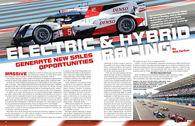 Performance Racing Industry Magazine’s June 2016 Electric Hybrid Racing spread will be recognized in the upcoming American Inhouse Design Annual and on the Graphic Design USA website later this year. |