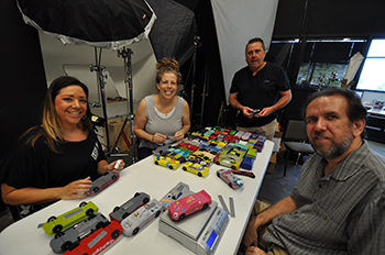 Dave Williams, SEMA Pinewood Drag Races subcommittee chairman, and his team of industry and SEMA staff volunteers recently paid a visit to the SEMA Garage, located in Diamond Bar, California, to tune up the track and race kid-built cars for the 10th anniversary of the SEMA Cares Pinewood Drag Races. |