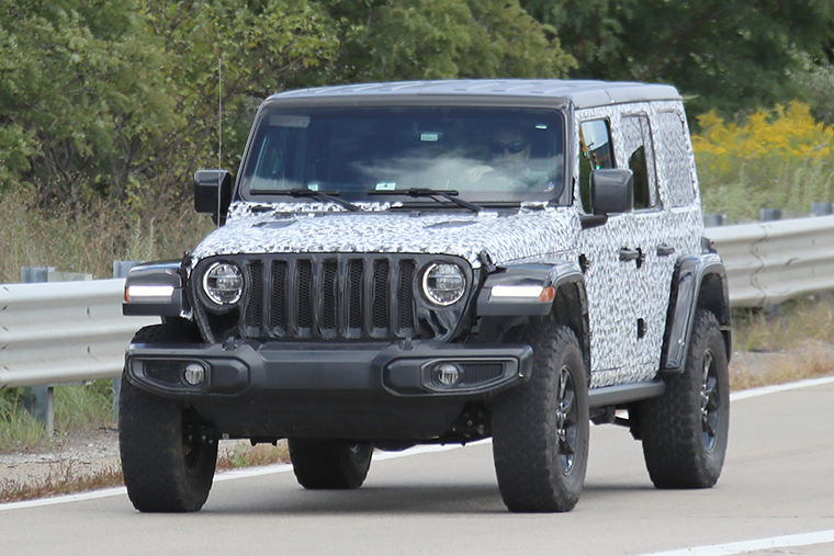 As seen in these shots, the new Wrangler will resemble the outgoing one, but various aerodynamic tweaks will make it less upright. A fixed windshield and slightly longer front end are the main giveaways.