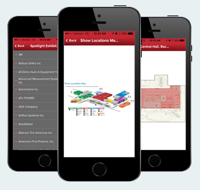 2. Locate on the Go. Locating exhibitors while on the Show floor is easier with enhanced search features that allow you to find companies by name, product category and keywords. Once located, companies can be added to your “favorites” list and each exhibitor’s booth number and display will be highlighted on the map so you can quickly head from one appointment to the next.