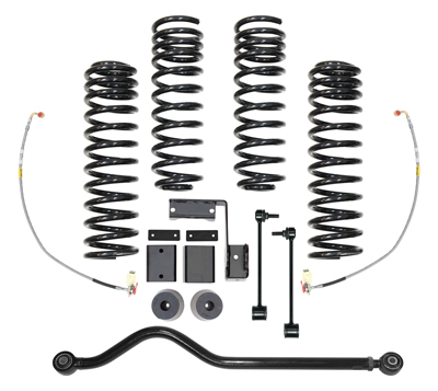 To complete the kit, any of the Rancho performance shock absorber series—RS9000XLs, RS7000MTs and RS5000s—are compatible with the system. The Rancho kit was designed for full compatibility with the Jeep Electronic Stability Control System. The system fits 35-in. tires with trimming.