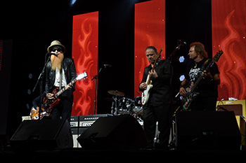 Jessi Combs and Jarod DeAnda emceed the 2017 SEMA Industry Awards Banquet, themed “You: Leading Our Future.” | Backed by the Tilt-A-Whirl band, (L-R): Billy F Gibbons, Jimmie Vaughan and Michael Anthony rocked the house, providing musical entertainment to those in attendance. |