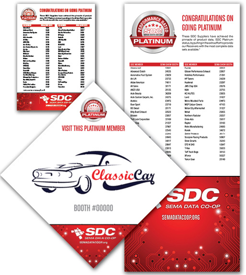 SEMA members are encouraged to take advantage of the SEMA Data Co-op’s (SDC) Platinum Rewards Program to receive $10,000 in marketing exposure at the 2018 SEMA Show. |