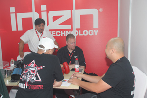 ![]() Injen Technology attendees at the show included Ron Delgado (standing), president and CEO, and Jay Crouch, director of global business development (second right). Crouch said that Injen Technology has exported cold-air intakes and exhaust systems into the Chinese market for about a decade. “Chinese consumers are enthusiastic with their booming car culture and are continually looking to the United States for new trends and products,” he said. “These new products and trends are increasingly being reflected in their vehicles, which reinforces the fact that U.S. products are in high demand in China. From U.S.-branded trucks and Jeeps to Euros and sport compacts, every aspect of the aftermarket is represented well in China, and they are yearning for aftermarket support.” |