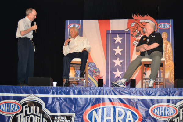 Tom “The Mongoose” McEwen (far right) on stage during the NHRA Breakfast at the SEMA Show. |