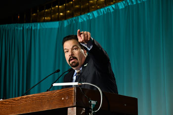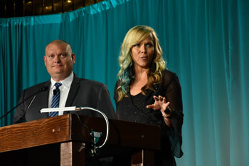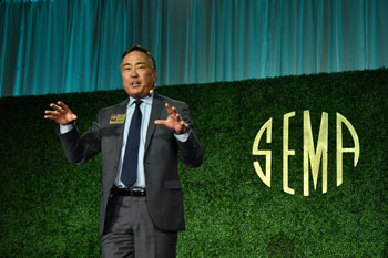 ![]() The Gala was emceed by industry personalities Kevin Oeste (left) and Jessi Combs (right). | ![]() SEMA Board of Directors Chairman Wade Kawasaki welcomed attendees to the annual Installation & Gala. | |