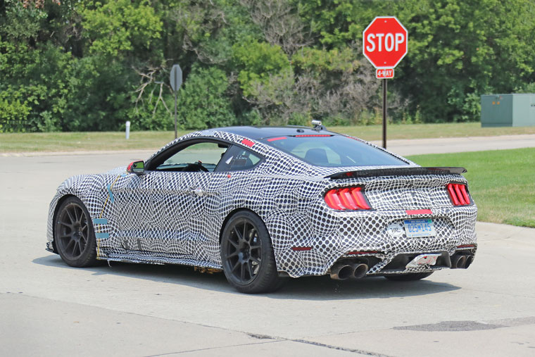 Here’s the ’20 Ford Mustang Shelby GT500 fitted with a track pack spoiler. Earlier prototypes have been caught without a spoiler, while the official Ford teaser showed a rather large wing.