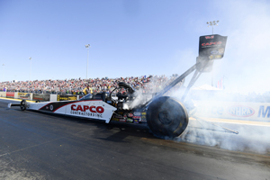 ![]() Steve Torrence went 3.770 seconds at 323.66 mph in his Capco Contractors/Torrence Racing dragster to defeat Clay Millican’s 3.798 at 320.28 in the final round. |