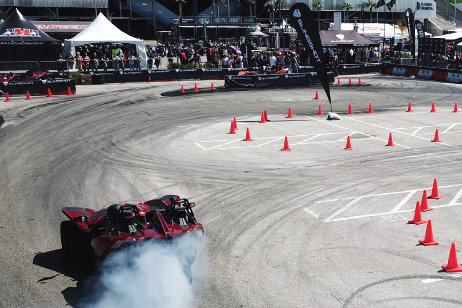 Showgoers can ride as a passenger while a professional driver demonstrates the Slingshot’s driving capabilities by whirling around multiple tight corners within a custom-built, 18,000-sq.-ft. course.