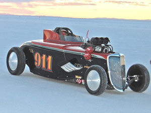 ![]() This ’34 “911” Ford highboy roadster with a 4,000+ hp engine hit 301-mph at the Bonneville Salt Flats. |