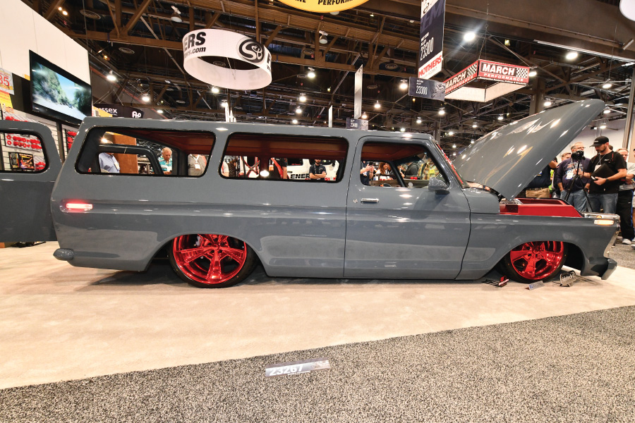 Energy Suspension featured a 1976 Ford GTB100, nicknamed "El Chapo," in the company's booth at the 2018 SEMA Show. Crafted by Craig Piggott of River City Rods & Fabrication, “El Chapo” (English translation: “Shorty”), is also an entry in the 2018 SEMA Battle of the Builders.