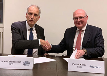 Lighting and electronics specialist HELLA and leading automotive technology company Faurecia have announced a strategic partnership for the development of innovative interior lighting solutions. Both companies will jointly develop lighting with high-technology content in the domain of surface lighting and dynamic lighting for a more personalized cockpit environment. Faurecia will contribute its expertise as a complete system integrator for vehicle interiors and HELLA will supply innovative products in the field of interior lighting.