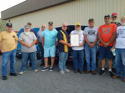 West Virginia’s Knobley Mountain Auto Club proudly recognized the day at its event in Keyser, shown displaying the 2018 CCAD Congressional Resolution. |