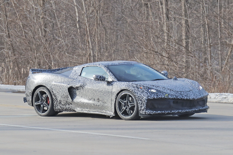 Here is the latest prototype of the mid-engine Corvette, with photos of the production headlights, taillights, "Batwing" and other details that we haven't seen before.