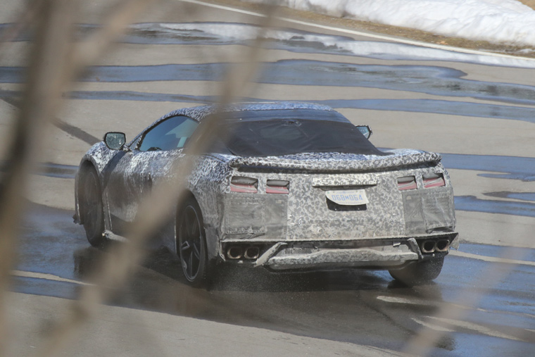 Things get even more interesting out back, with a first look at the production-intent taillights. The overall design direction of the taillights is highly reminiscent of the current C7 Corvette, with taillight elements featuring two vertical bars connecting a horizontal one. That pattern repeats four times on the rear end—twice on the driver’s side, and twice on the passenger side—much like on the C7 today.