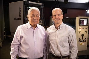 ![]() Evan Smith (right), president and CEO of Hypertherm, and OMAX co-founder and CEO John Cheung. |