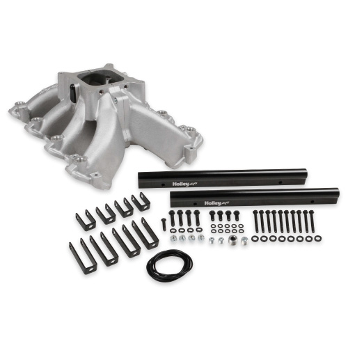 Holley Single-Plane Split-Design Race Intake Manifold for GM LS Holley has released its Single-Plane Split-Design EFI Race Intake Manifolds for GM Gen III and IV LS engines. Designed specifically for cathedral-port cylinder heads and 4150-style square-bore throttle bodies, they're said to be lighter than ordinary split race intakes while costing one-third to one-half as much. The manifold's two-piece configuration allows for direct access to the internal plenum and port surfaces, which is said to enable easy custom porting and port-matching; shoulder-bolt locators and captured O-rings are said to afford easy, precise reassembly. Available on either silver or black finishes, the manifold features an A-B height of 7.32 inches (0-degree carb-flange angle) and cathedral ports that measure 3.28 inches tall by 1.10 inches wide. Fuel rails, O-rings and all necessary fasteners for installation are included. 888-464-6553 | ![]() |