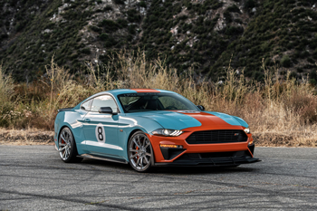 ROUSH Performance unveiled its newest custom vehicle, a ’19 ROUSH Stage 3 Mustang designed exclusively for SEMA’s Immediate Past Chairman Wade Kawasaki at the McCall’s Motorworks Revival, August 14, in Monterey, California. Built to be Kawasaki’s “track-capable daily driver,” the vehicle featured the blue-and-orange Gulf Racing livery painted by SpeedKore Performance Group to match the paint scheme of the Ford race cars that stormed Le Mans a half-century ago. Kawasaki’s vehicle was based on the ’19 ROUSH Stage 3 Mustang, and featured a ROUSH TVS R2650 supercharger, along with a ROUSH cold-air intake and ROUSH calibration to boost the car’s 5.0L Ti-VCT V8 engine to an overall power output of 710hp and 610 lb.-ft. of torque. The Mustang was also equipped with the optional ROUSH Active Exhaust System, which offers four different user-selectable exhaust modes. Other upgrades included a custom Sikky Manufacturing handbrake designed for drifting.