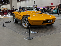 Mattel Hot Wheels Legends Tour Detroit winner and Select Six Win Field award Syracuse Nationals are just some of the accolades Paul Juerwicz has picked up on his way toward the SEMA Show. He intends to add another in BOTB. His ’57 Studebaker Golden Hawk features a ’57 Studebaker cowl/windshield, a ’60’s Pontiac front clip, ’60–’63 Chevy Corvair rear panel, a ’60 Thunderbird hood and an ’80s Audi station wagon sunroof used as a trunk lid for the car’s profile. The build sits atop of an ’80s Jaguar rear suspension and a ’90s Corvette chrome-plated front suspension. A ’96 Lincoln modular 4-cam V8, modified intake manifold Demon 3-bbl carburetor and MSD distributor power the build with a C-4 automatic transmission and Ididit steering column making it move.