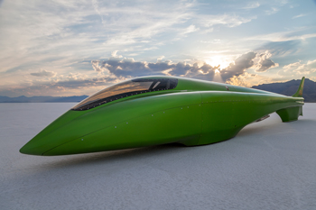 ![]() The Salt Shark streamliner, handcrafted by owner/driver Tom Flattery and friends in Fremont, California, and seeking to become the “world’s fastest gasoline powered automobile.” |