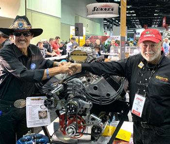 ![]() Richard Petty’s (left) presence at the 2019 PRI Trade Show helped Sunnen set a new record of $120,000 in donations during the Sunnen Engine Charity Sweepstakes. |