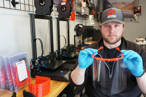 Matt Beenen, 2018 SEMA Launch Pad winner, is shifting production at BuiltRight Industries to make face shields in order to meet the needs of his community, customers and their families in the wake of the Coronavirus pandemic. BuiltRight manufactures truck organization accessories and has a wide range of prototyping equipment in-house, so, Beenan selected a design for a protective face shield and proceeded to produce a 3D-printed frame. He found that clear binder covers, readily available through office supply outlets online, could be hole-punched to fit onto the face shield. He put his 3D printer to work, offered his online community the face shields and found the demand was overwhelming. One printer just wasn’t enough, so Beenan ordered four more 3D printers. With five printers running 12 hours a day, Beenan is producing and distributing 120 shields daily. He anticipates doubling that output in the coming week.