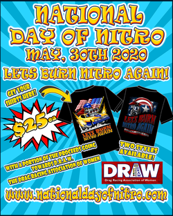 Nationwide fire ups, interviews and stories told will be shown throughout the day. Starting at 12:00 p.m. (EDT), the distinct sound of nitro burning engines will be heard across the country. “Let’s Burn Nitro Again” T-shirts are available and a portion of the proceeds will be donated to the Drag Racing Association of Women (DRAW). All participating teams will be entered into a drawing where one lucky team will receive $1,000 credit toward entry or ticket purchases for the 2021 Good Vibrations March Meet, presented by Lucas Oil. Stith Printing Inc. is also offering a $1,000 credit to be applied toward new artwork.