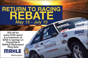 MAHLE Motorsport is ready to help racers make the most of their downtime to build their best possible engine with the MAHLE Motorsport Return to Racing rebate. Effective May 15–July 15, 2020, MAHLE Motorsport is providing a consumer rebate of $10 off for every $100 spent on MAHLE PowerPak Piston Kits and MAHLE Motorsport ring sets with a maximum savings not to exceed $250 and limited to to two qualifying purchases per household. This rebate is for all retail consumer purchases made in the United States and Canada (except where prohibited by state or territory law) on qualifying MAHLE PowerPak piston kits and high performance ring sets sold exclusively through authorized MAHLE dealers. To reference the full qualifying rebate part list, and download the rebate form visit fueledparts.com/rebate/mahle.