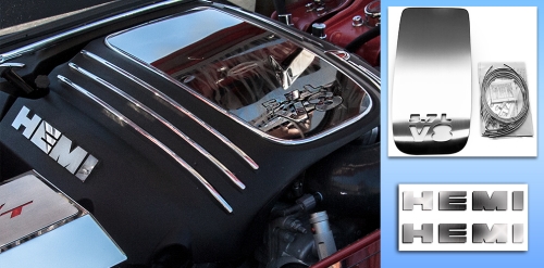 American Car Craft This American Car Craft 5.7L Engine Shroud Trim Kit is crafted from premium grade polished stainless steel and is designed for very easy installation. This dress-up engine shroud kit fits on the 5.7L stock engine shroud and adds a clean show-winning style to the engine bay. The Engine Shroud Kit includes all trim on engine shroud except HEMI lettering which is sold separately. The kit fits all 5.7L Engines equipped with the same stock engine shroud. SKU 153008: ENGINE SHROUD 14-Pc SKU 153009: HEMI LETTER SET 8PC FOR CHALLENGER (2008-2020) SKU 333007: HEMI LETTER SET 8PC FOR CHARGER, MAGNUM, & CHRYSLER 300 (’11–’18) | ![]() |