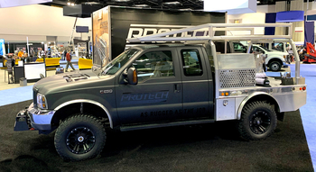 | Submitted by: ProTech Industries Vehicle: ’03 Ford F-250 XLT 4x4 Wearing a custom wrap, this build makes an already-capable 4x4 an ever more versatile performer, on-road and off. The stock PowerStroke engine and drivetrain were left alone in favor of a raft of exterior parts from ProTech Industries including the aluminum flatbed that utilizes 6061 T6 alloy crossmembers. Also riding in the back are a set of underbody boxes, a dog box, storage boxes for tools, rear fenders, running boards and a removable and configurable lumber rack with an integrated storage basket. A Warn M12-S winch provides entree into the far backcountry, and the Ford’s frontend has been retrofitted to accommodate a set of Warn premium manual-locking hubs. | ![]() |