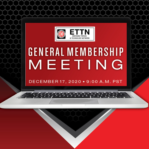 Taking place via Zoom, December 17, at 9:00 a.m. (PST), the SEMA Emerging Trends and Technology Network (ETTN) general membership meeting and networking event will be held online, making it easier than ever for members to participate and join in. Membership meetings are the ideal time and opportunity for members to get more involved and learn how to maximize their network membership.